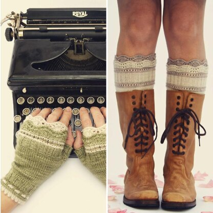Boot liners and matching mitts, knit in the round.
