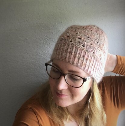The Brunch hat is knit from the bottom up using lace weight mohair and fingering weight yarn held together.