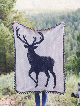 Whether you’re a hipster, a hunter or planning a woodland-themed nursery, the Buckhorn Blanket will compliment your modern rustic style. Made with half double crochet C2C stitches, you’ll “illustrate” your deer before adding the perfect playful pom pom edging. Try it in ecru and red to add a splash of Scandinavian style to your holiday decor.