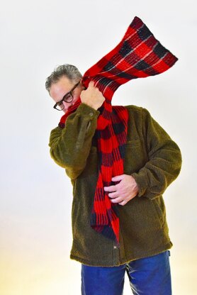 Buffalo plaid is an iconic tartan pattern formed with large blocks of two intersecting colors, typically red and black. This pattern traveled from Scotland to North America in the 1800s and has since become a classic American fabric for winter woolens. Like a woven plaid, the buffalo pattern in this scarf is created with the intersection of 2 colors of yarn.