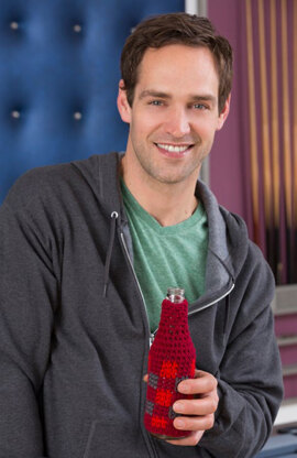 Buffalo Plaid Bottle Cozy in Red Heart Super Saver Economy Solids - LW4743 - Downloadable PDF