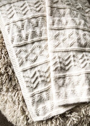 Building Blocks Blanket, knitted in beautiful merino 8ply. Geometric textured blocks of knit and purl patterns reflect the textures and patterns of nature.
