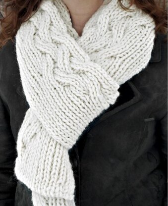 This reversible ribbed scarf or cowl has an attractive asymmetrical cable. It's worked in super bulky yarn, so it knits up very quickly.