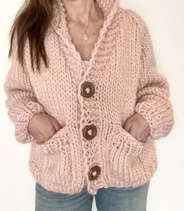 You will need: 600 yards of super bulky weight yarn US #19 straight needles (or size needed to obtain gauge) (3) 1 ½” buttons.