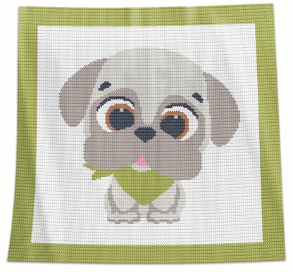 This pattern is available for instant download as a PDF file. It includes basic instructions on how to make a blanket body that are written in both British and American crochet terms. However, to add a design you will need to follow a colour chart that represents an entire blanket body piece.