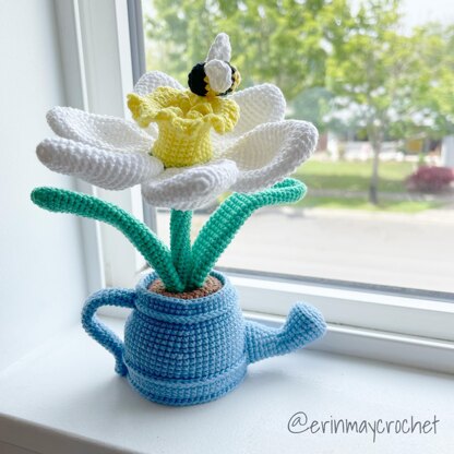 Learn how to crochet your own Bumble Blossom Daffodil with this detailed PDF pattern. Pattern includes step-by-step instructions with photos to crochet a daffodil, water can flower holder and one friendly bumblebee.