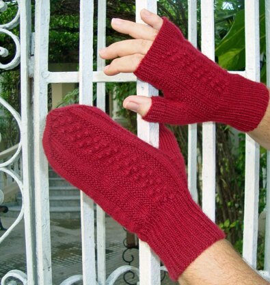 Knit in the round from the 1x1 ribbed cuff to the fingers. Mitts have 1x1 ribbing midway up the fingers and the thumb. Side-gusset thumb construction.