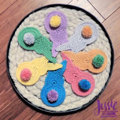 This pattern can be found for free online at jessieathome dot com/pattern/bunny-booty-bunting/