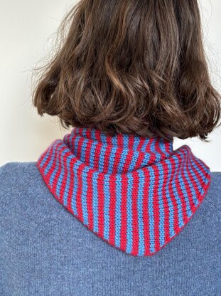 The Buoy Bandana is a triangle scarf taking inspiration from a boy scout scarf. It is the perfect size to keep you warm without the bulkiness of a regular scarf. Either keep things simple with a block colour and contrast edge, or for something more fun try making a striped version!
