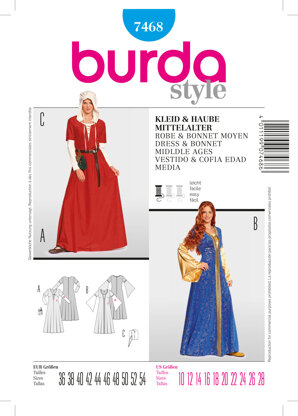 Burda Style Dress & Bonnet Middle Ages Sewing Pattern B7468 - Paper Pattern, Size 10-28 is a Beginner Sewing pattern by Burda Style, available as a Paper Pattern and includes instructions in English, French, Spanish. Super fun to make, this pattern could be your next masterpiece!