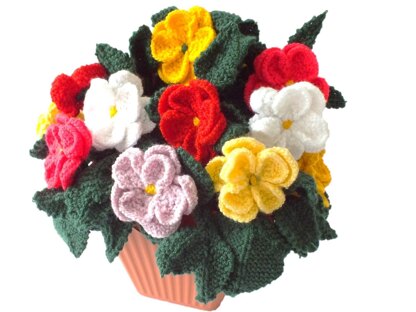 This knitted flower arrangement will look stunning on a patio and perfect for a gift for someone special or, of course, to keep for yourself.
