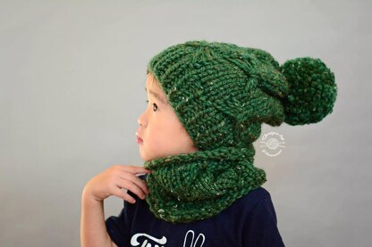 The Butterfly Slouch Beanie & Cowl is a chunky and cozy knit for both boys and girls, including the whole family.
