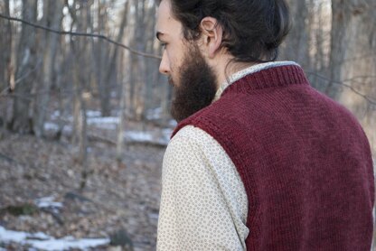 This men’s zippered vest features clean lines and sporty details like the ribbed panels at the sides. The vest is worked from the bottom up in worsted weight yarn, and finished with a lightweight zipper facing knit in sock yarn to give a polished look. This layering piece is meant to be worn with 3-4" of positive ease and is shown modeled with 3½" of ease.