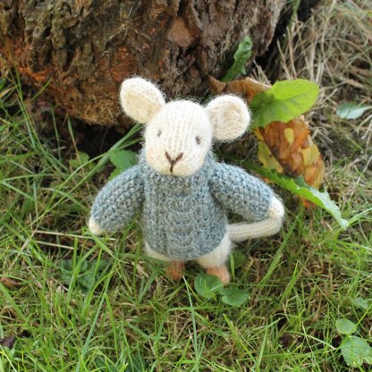 Knitting Pattern to make a mouse wearing a jumper.