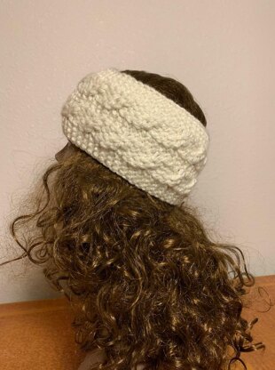 The headband uses 108 yards of a bulky yarn. Loops & Threads Charisma yarn in the Off White colorway was used in the sample.