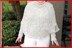The pattern for this feminine ponch has cables throughout in panels that gradually decrease as you go toward the neckline. the neckline stand away from the neck, it does not grab at the neck. The uniqueness of this design is the added cuffs. When you put this poncho on, you put your hands through the cuffs that are attached. This feature keeps the arms covered. The poncho does not slide back when you raise your arms. It also gives the illusion of being a sweater without the constraint of one. It is almost impossible to make one that doesn't fit comfortably.