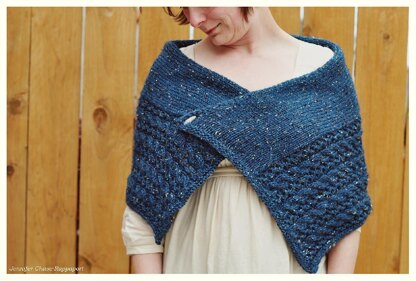 Eyelets and cables combine for a luxurious wrap. The stitch patterns are written out and easy to follow. The long edges of the wrap use a selvage stitch that creates an i-cord style edging while knitting.