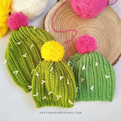 This Cactus Beanie is worked from side to side and seamed at the end.