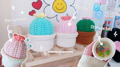 This cactus amigurumi can use as pin cushion, stitch marker/ jewelry storage box, the aesthetic look great for your room decor. This pattern has the instruction for 2 sizes. (Small and Large)