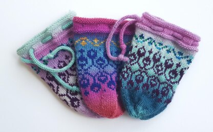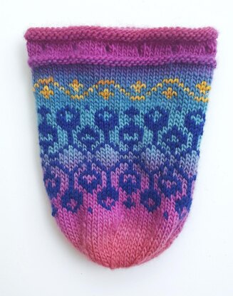 This is a fairly easy colorwork pattern with no long floats to carry. You can do this pattern with three colors of yarn, or two if you wish, it's all up to you! Long color changing yarn will look amazing as the main color of this bag.