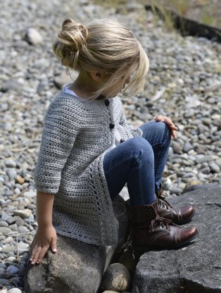 Finished approx. measurements with sweater buttoned: after gentle blocking. Chest: 21.5 (24, 26.5, 29, 31.5) inches Sleeve length {underarm}: 4.5 (5.5, 6.5, 7.5, 8.5) inches Sleeve circumference {at top}: 8.5 (9.5, 10, 10.5, 11) inches Sweater length: 16 (17, 18, 19, 20) inches