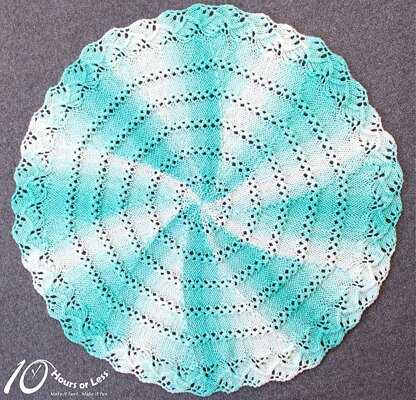 Go from hours-to-heirloom with this quick and classic knitted baby blanket! Worked in one piece, the circular silhouette sports rings of rickrack lace bordered by a band of lacy leaves. Best of all? It’s cleverly constructed to be worked in rows, so you don’t have to fuss with double-pointed needles. And with our step-by-step instructions for making any size in any weight of yarn, you can stitch an assortment of timeless treasures….from laceweight shawls to chunky afghans!