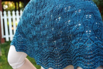 Caladan is the fifth shawl in my Dune series of crescent shaped shawls inspired by the House Atreides. It requires intermediate knitting skills including wrong side patterning, beading, and complex decreases. Experienced lace knitters will find enough to keep them interested and beginning lace knitters will probably find it a challenge.