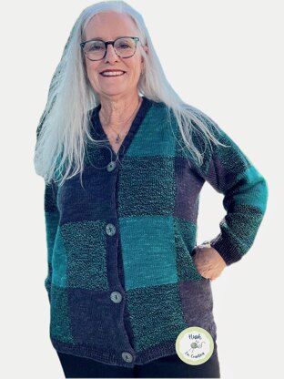 The Caladium Cardigan is a top-down, modified drop-shoulder sweater. The boxy shape with 20 cm/7.75 in of positive ease provides a comfy loose fit. The fun blocks of colour are created with plain and marled coloured yarn. Shoulders are shaped with short rows for a better fit and the cardigan is finished with a sturdy double-knit button band. It’s a cozy, comfortable cardigan that you’ll want to wear on every cool day!