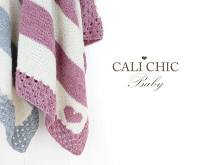 ♥ Knitting pattern for adorable Cali Kids blanket for baby to toddler with crochet trim and cute heart or crown motif. It will make a welcome baby shower gift for new moms, or a favorite blanket within the family for your toddler.