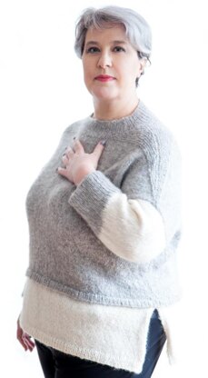 This sweater is worked from the neck with the set in sleeves method. Back and fronts are worked separately before joining them to work the body. This sweater is designed to fit with positive ease (+10 - 15 cm /4"- 6")