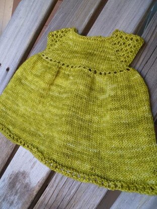 The lovely pink dress has a seed stitch bodice, the pattern has a plain bodice. Yarn weight Fingering / 4 ply (14 wpi) ?
