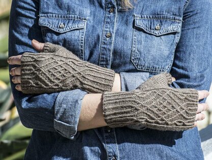 Cambre fingerless mittens feature an intricate twisted stitch pattern on the back. Quick and inexpensive (I have used just one 50 gr skein of KnitPicks Stroll) project for maximum effect.