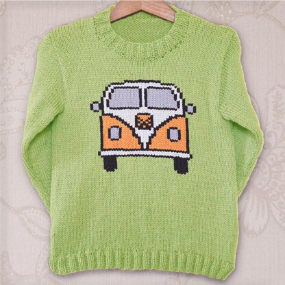 This is my classic children's round neck set-in sleeve sweater pattern with an image of a campervan on the front.