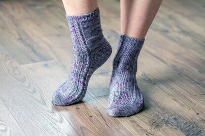 Sample was knit using Black Cat Custom Yarn Luxury Sock. 70% superwash merino wool, 20% cashmere, 10% nylon; approx. 400 yards (365 m) per 4.0 oz (115 g) skein; 1 skein.