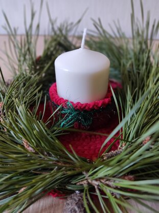 Christmas Candle Holder + Free Bonus Christmas Wreath. The detailed written pattern is on 20es pages and has 38 photos. You need only 42 grams of YarnArt Plus and 3 grams of YarnArt Christmas. Christmas Wreath consists of 11 pages and 17 photos.