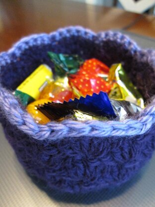 If you want your bowl stiff, crochet two strands together and increase your tension. This pattern is a scrap buster, so it calls for no specific yarn, however use the hook specified for the yarn you are going to use.