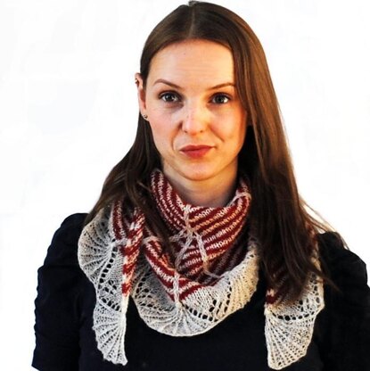 The Candy Stripe Shawl is a triangular bottom up shawl. It has it's name due to the striped i-cord along its top edge. The lace border consisting of playful tassels and the striped body make this a delightful design to brighten up your mood and warm your neck. The Shawl comes in two sizes: The small neck-kerchief knits up very quickly and is perfect under jackets or coats to keep out the wind without adding bulk. The shawl is big enough to cuddle up in and also a lovely gift to someone else or yourself.
