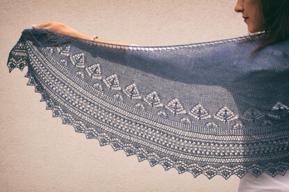 Canevara Shawl is a crescent shaped mid-sized lace shawl, lightweight and delicate with its decorative beads. Its body is knitted from top down and then the border is worked sideways.