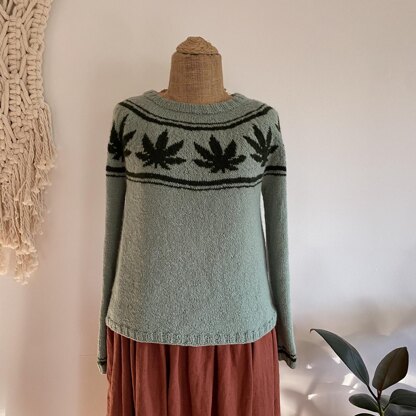 Whether you appreciate the cannabis plant for its medicinal properties or for its ability to supply hemp for creating sustainable materials, I have the sweater for you! Cannabis Wreath celebrates this unique plant. This seamless pullover knit from the top-down features a folded ribbed collar and a fun cannabis leaf motif on the yoke sandwiched between stripes. Knit up in Tukuwool’s fingering weight yarn, it is earthy and lightweight. Wear your Cannabis Wreath sweater with pride!