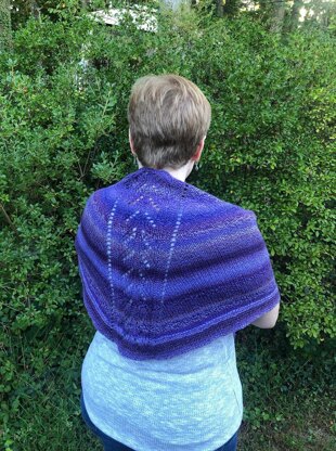 This is a very simple shawl to make. Excellent for beginners! Size is easily adjustable for whatever amount of yarn you have, so excellent for handspun.