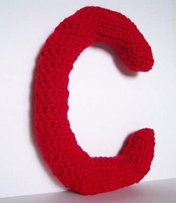 This letter C is approximately 8 inches tall and 6.5 inches wide. This item is crocheted and then stuffed with polyfill stuffing.