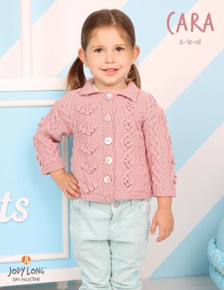 Sampler style cardigan which has A-line shaping. Design uses DK weight yarn and sized for 0-11 years.
