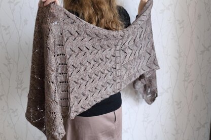 This beautiful lace wrap was inspired by the Scottish landscape. The heather-covered moors, rolling hills and meandering footpaths. The gentle, soft air and open skies. The pretty lace patterns in the shawl hold the memories of the views in the highlands.