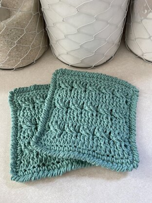 Everyone needs a set of hot pads or pot holders in their kitchen, and this set crochets up beautifully and quickly! Made using 100% worsted weight cotton, they can also double as trivets for your countertops and are easy care.