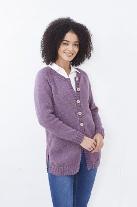 This elegant raglan sleeved cardigan and jumper pattern has a side seam split for a flattering fit.