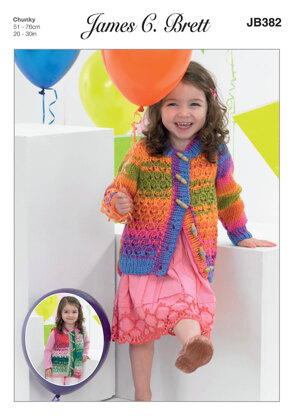 Cardigan and Waistcoat in James C. Brett Party Time Chunky - JB382 - Leaflet is a Intermediate Knitting pattern by James C. Brett, available as a Leaflet and includes instructions in English. Super fun to make, this pattern could be your next masterpiece!