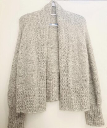 GARMENT CONSTRUCTION: The cardigan is worked seamless from the top down with Raglan increases. Neckline increases are added for a slight V-Neck front and a better fit. Body is worked flat to underarm, then sleeves are separated, and body is finished. The sleeves are later worked in the round.