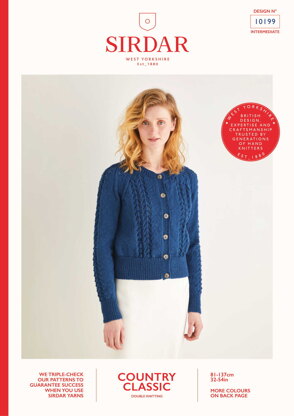 Cardigan in Sirdar Country Classic - 10199 - Leaflet is a Intermediate Knitting pattern by Sirdar, available as a Leaflet and includes instructions in English. Super fun to make, this pattern could be your next masterpiece!