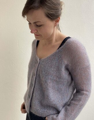 This lightweight cardigan is the perfect layering piece for spring/summer. It’s airy and warming at the same time. Using at least 2 lace-weight yarns held together you can create endless color shades. You can substitute the yarn easily for 1 yarn in DK-weight or DK- /sport-weight together with a lace-weight yarn.