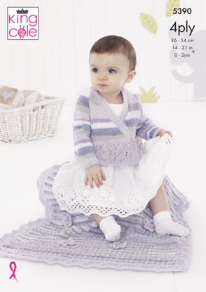 Cardigan, Pinafore Dress & Blanket in King Cole 4ply - 5390pdf - Downloadable PDF